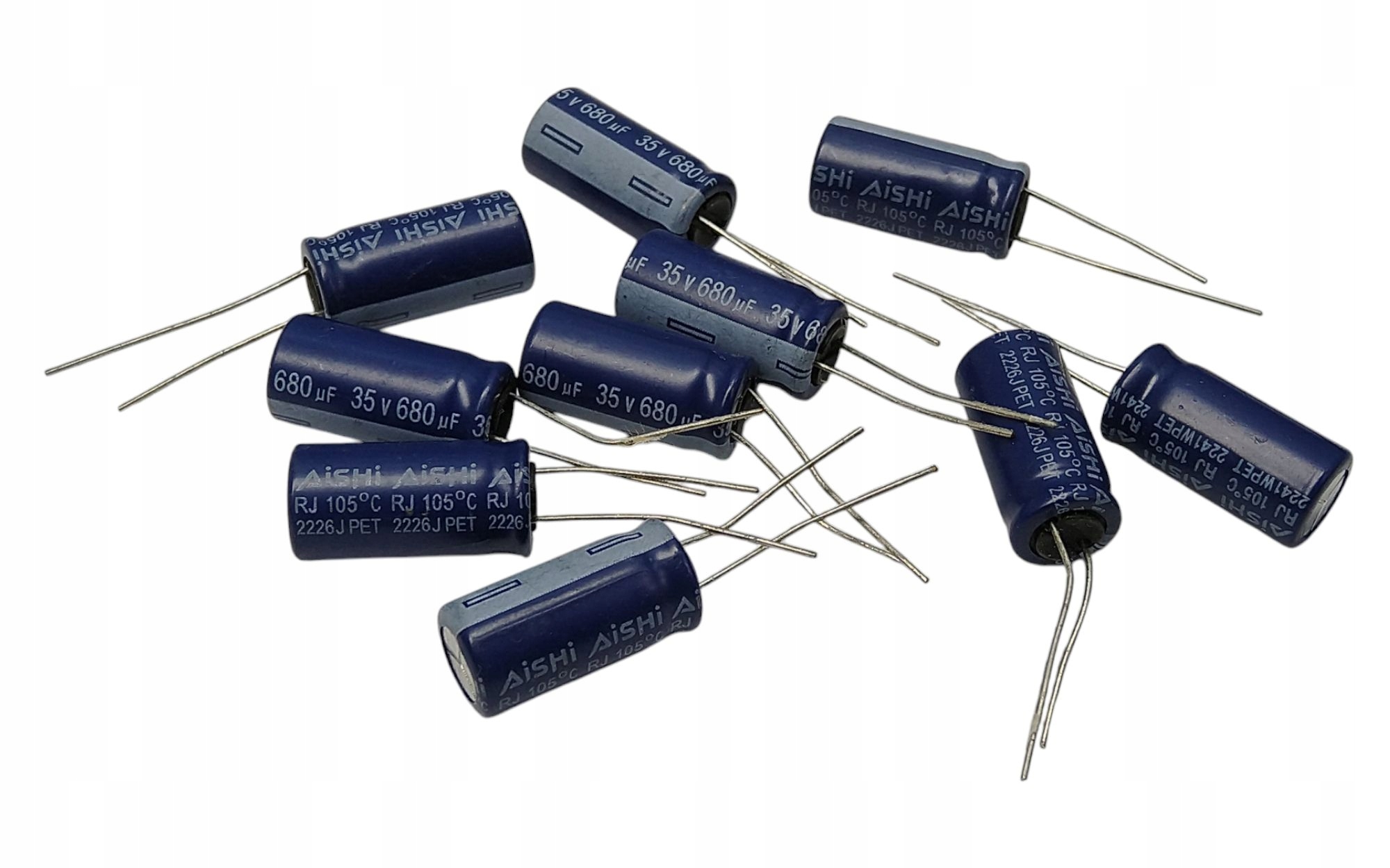 10szt Kondensator Elektrolityczny Aishi RJ 680uF 35V 105C