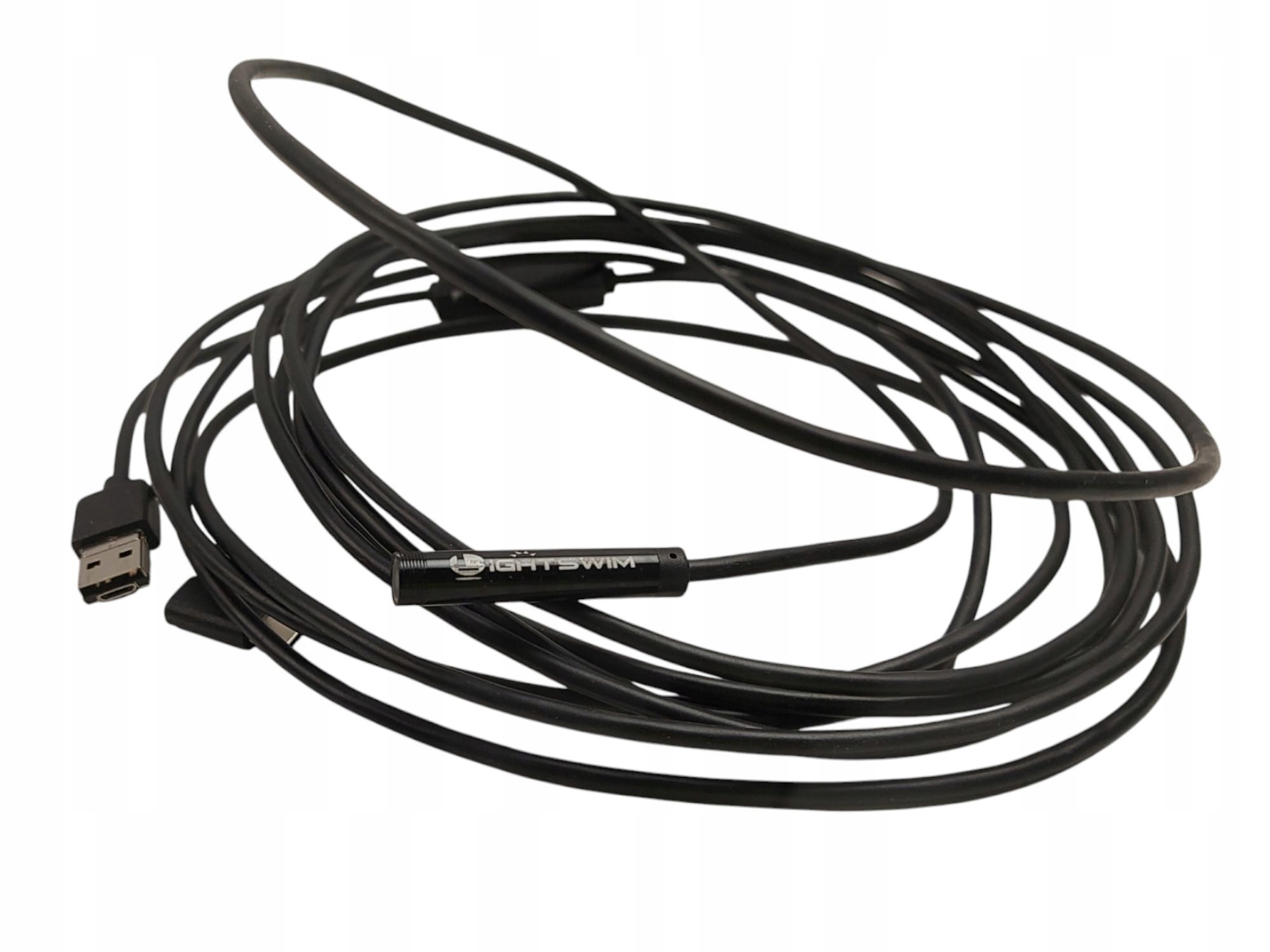 - Półsztywny kabel 5 m - półsztywny kabel może się wyginać i zachować swój kształt, aby uzyskać dostęp do wielu zamkniętych miejsc, aby spełnić różne potrzeby. Kabel USB Lightswim endoskop 5 m umożliwia łatwy dostęp do wielu wąskich miejsc, takich jak zakrzywione otwory lub rury. Przed użyciem należy pobrać aplikację "inskam".