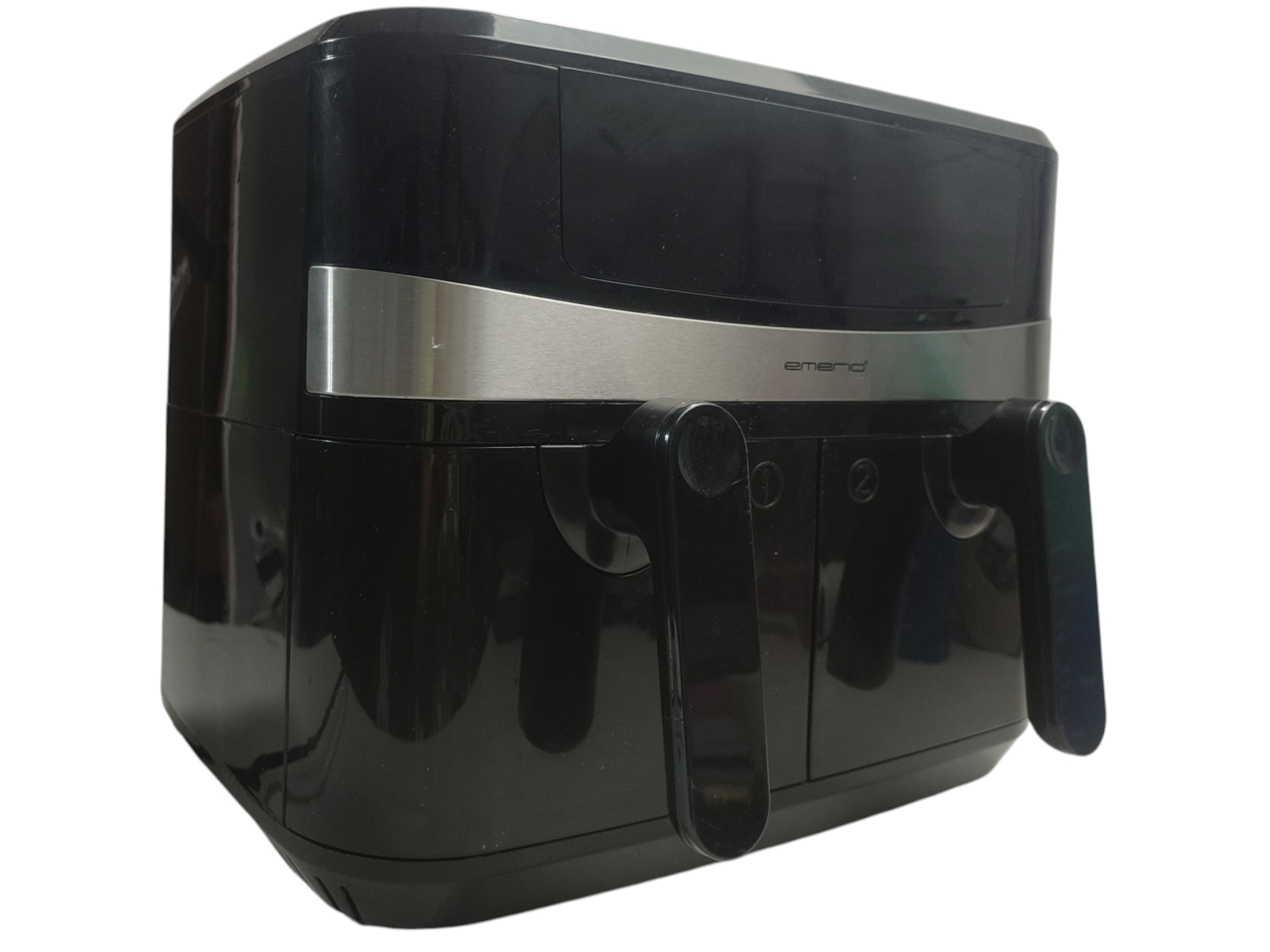 Emerio AF-126672.4. Typ produktu: Frytkownica na gorące powietrze, Pojemność: 9 l. Rodzaj konstrukcji: Podwójny, Kolor produktu: Czarny, Typ kontroli: Dotyk. Moc: 2400 W. Szerokość opakowania: 430 mm, Głębokość opakowania: 445 mm, Wysokość opakowania: 360 mm