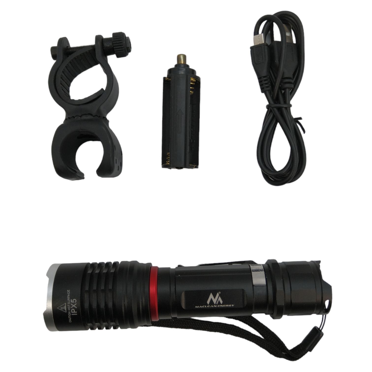 Wysokiej jakości latarka rowerowa z możliwością ładowania przez USB, renomowanej firmy Maclean Energy. Prosta w obsłudze, przyjazna użytkownikowi latarka akumulatorowa. Posiada bardzo mocne źródło światła - najnowszej generacji dioda Cree LED. Dodatkowo w zestawie ogniwo wysokiej jakości 18650 Litowa.