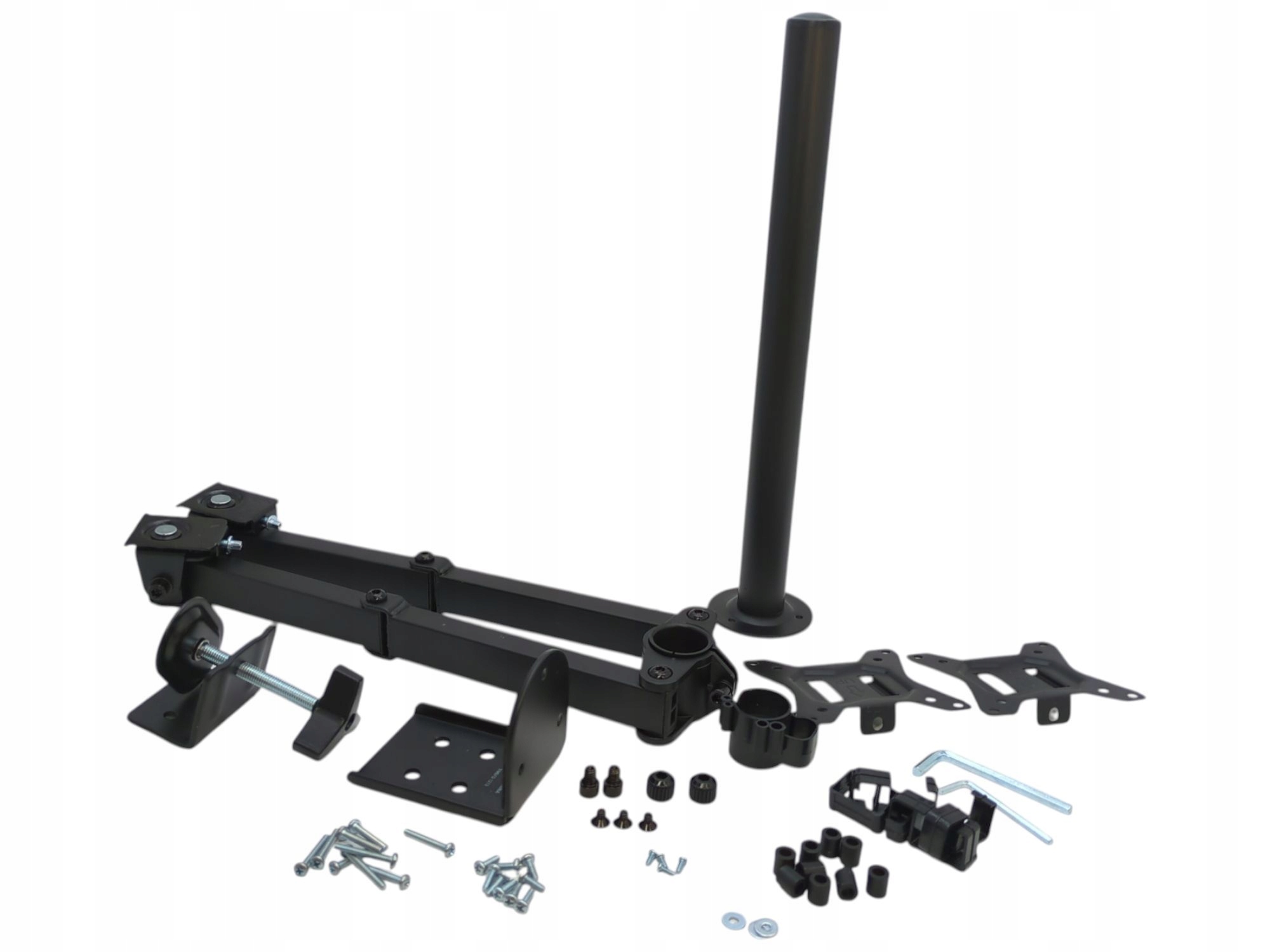 - Stalowy uchwyt do dwóch monitorów wytrzymuje do 17,6 funta na ramię.