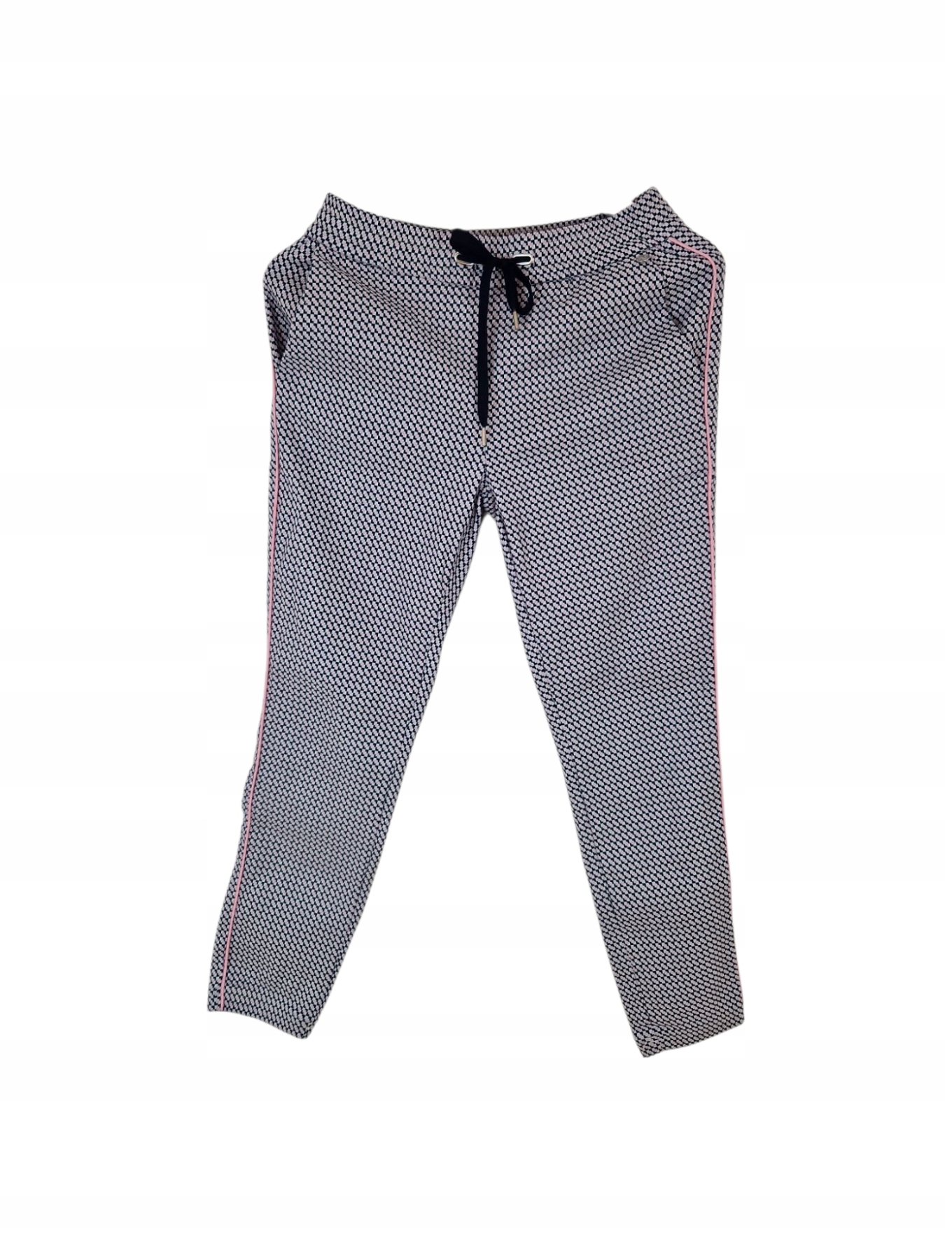 Kolor: Czarny z białym wzorem i różowymi lampasami