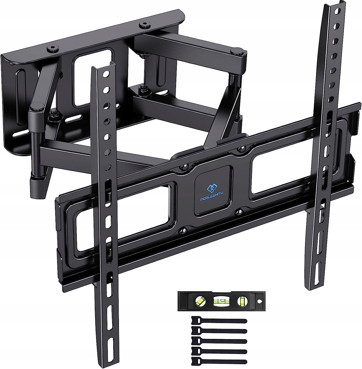 Dwuramienny uchwyt ścienny do telewizora o pełnej swobodzie ruchu zrobiony z wytrzymałościowego aluminium i stali dla niezawodnej wytrzymałości, udźwignie telewizory o wadze do 45kg i został przetestowany wytrzymałościowo na obciążenie czterokrotnie przekraczające zalecaną wagę maksymalną według norm UL. A technologia spawania zrobotyzowanego czyni cały uchwyt ścienny do telewizora solidnym i bezpiecznym